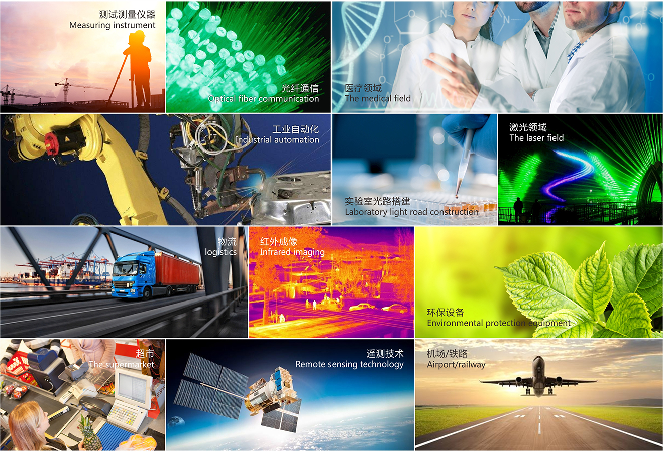 環(huán)保設(shè)備、激光領(lǐng)域、紅外成像、遙測技術(shù)、機(jī)場/鐵路、超市等領(lǐng)域。